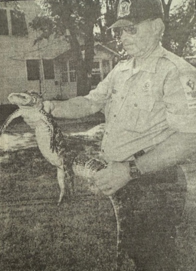 Bruce and the gator he captured at the Ulysses Golf Course.
